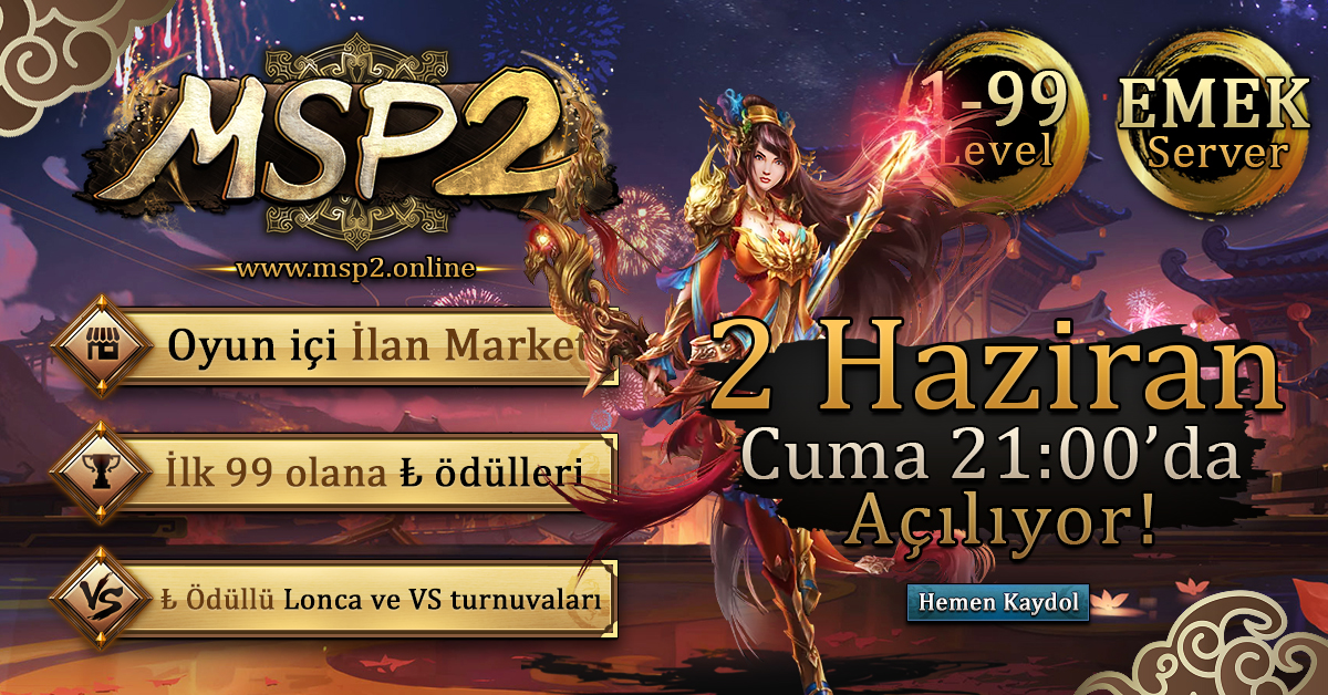 MSP2 Olay sunucusu 2 Haziran Cuma günü sizlerle ! ▪ 1-99 Level ▪ İlk 99 olana TL ödülleri ▪ TL ödüllü Lonca-WS turnuvaları https://msp2.online/ https://discord.gg/kEc6sr7AGw